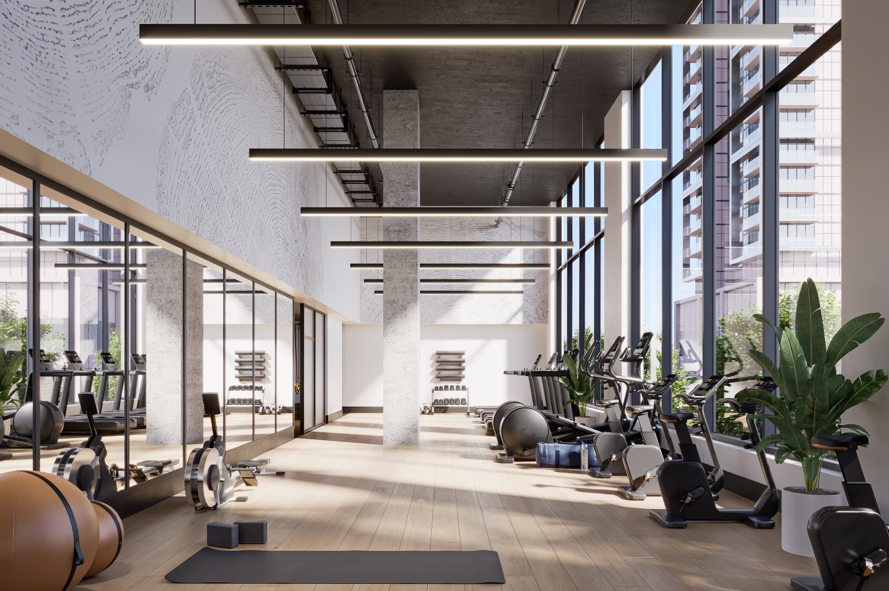 Guests can be accommodated in a hotel-style suite complete with a kitchenette and private terrace, while fitness enthusiasts will appreciate the state-of-the-art center, which includes a weight room, cardio room, private workout pods, and space for yoga.