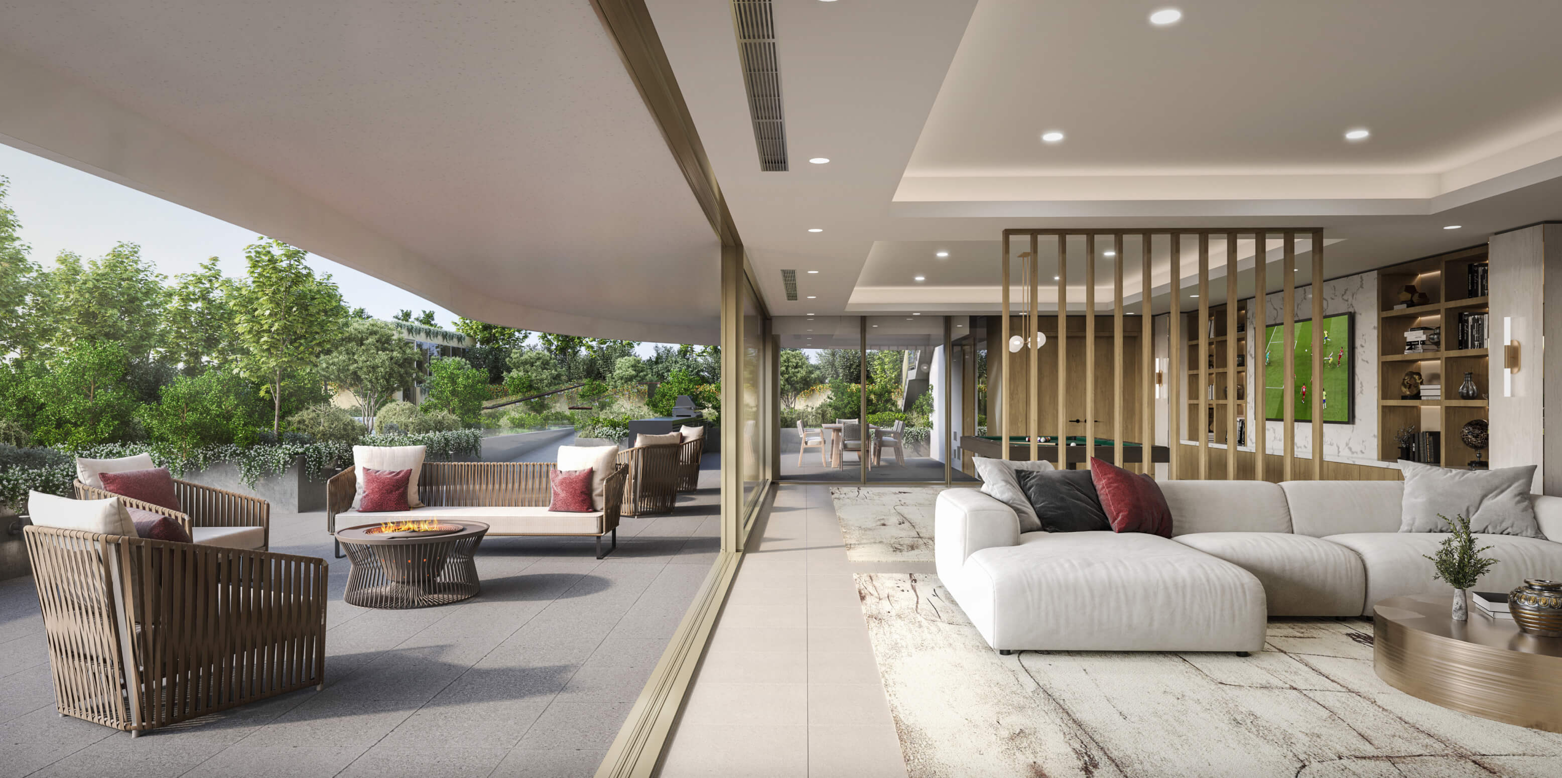 Residents can indulge in over 35,000 sq ft of indoor and outdoor amenities spread across five levels. Highlights include an outdoor swimming pool, hot tub, and sundeck, a state-of-the-art fitness center, an entertainment lounge with a dining area and billiard table, and a luxurious sky lounge on the 14th floor with a large wraparound terrace offering breathtaking views. The outdoor spaces feature lush gardens, terrace seating, an outdoor cinema, dining area, putting green, urban gardening spaces, and a serene garden retreat. Additional amenities include separate private steam rooms for men and women, a music room, coworking lounge, yoga studio, dog wash station, car wash stalls, a children's play area, and two hotel-style guest suites for visitors.
